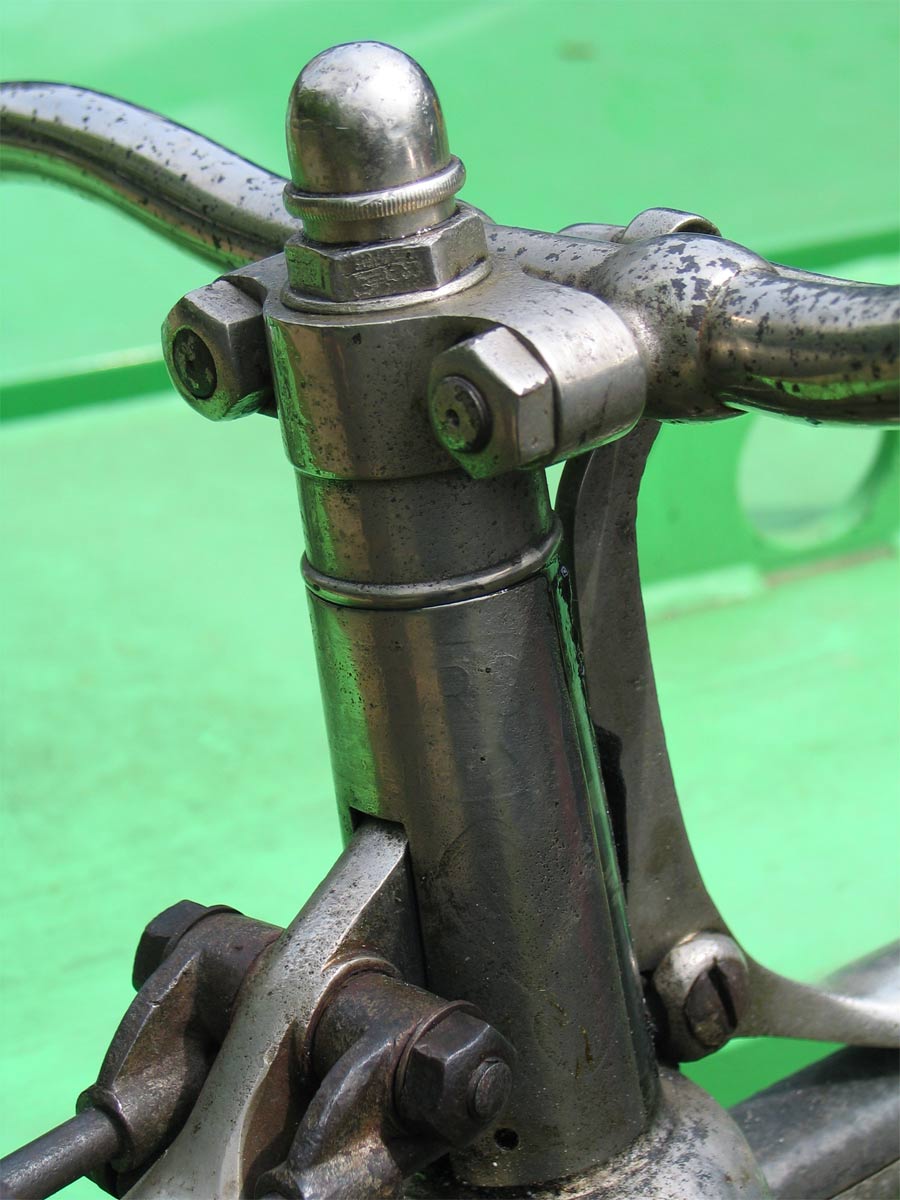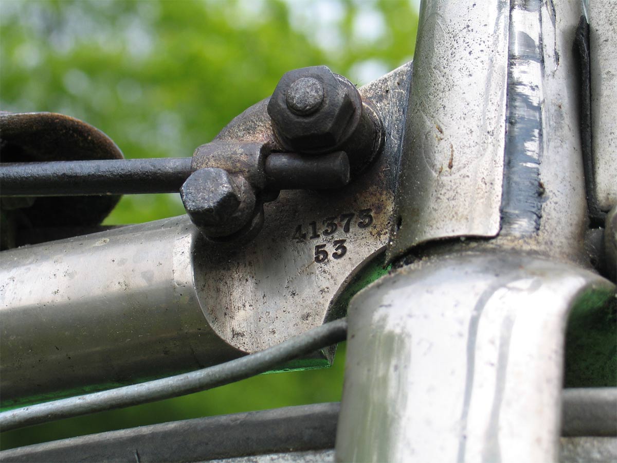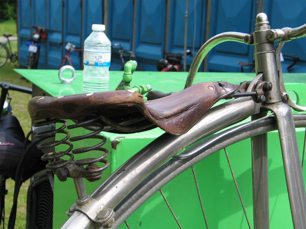 With its serial number 41375 it was built around 1886. It features the later type of detachable handlebars, and serial number on right side of the neck. It is a marvellous and original bike with beautiful patina. I am not sure about the saddle, it may be an aftermarket saddle. But it sure is old and it fits the bike very well.
